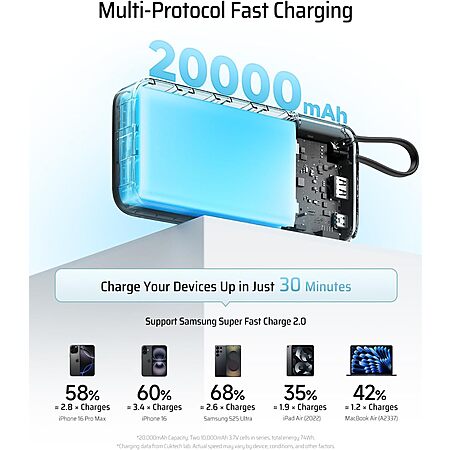 CUKTECH 20000mAh 45W Power Bank w/ Built-in USB-C Cable $18.08 + Free Shipping w/ Prime or on $35+