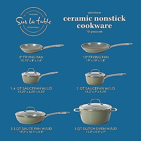 $64.84 | 10-Piece Sur La Table Ceramic Nonstick Pots and Pans Set at Amazon