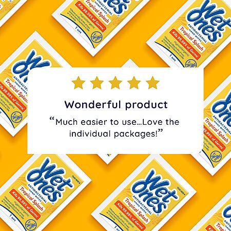 Model: Wet Ones Antibacterial Hand Wipes Singles, Tropical Splash Wipes, Individual Wipes, Antibacterial Wipes, Hand Wipes Individually Wrapped, 24ct (6 pack)