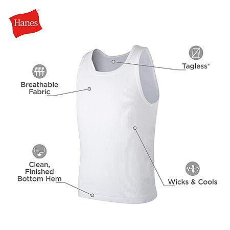 $19.12: Hanes Tank Cotton Undershirt, EcoSmart, 10 Pack, White, SM-XL