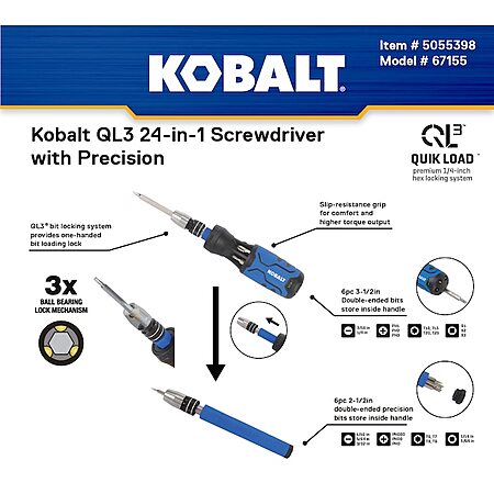Kobalt QL3 24-in-1 Screwdriver w/ Precision 2" Multi-Bit Combo Tip Screwdriver Set $24.48 + Free In-Store Pickup at Lowe's