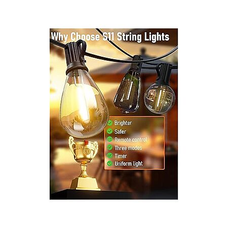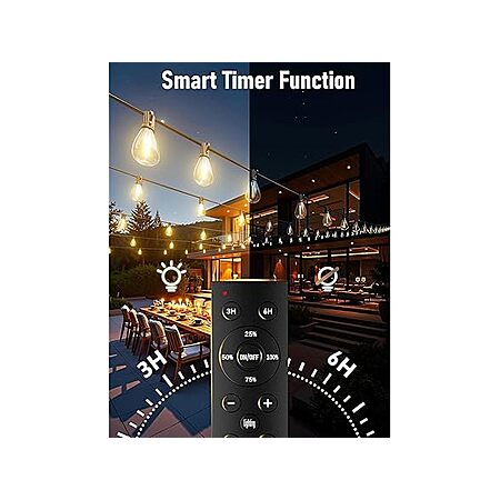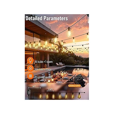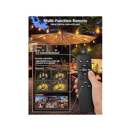 [Woot! App] $17: luckystyle 100FT LED Outdoor String Lights with Remote, 35+ 1 Shatterproof Bulbs, Waterproof, Dimmable for Patio, Garden, Backyard, Balcony – 2700K