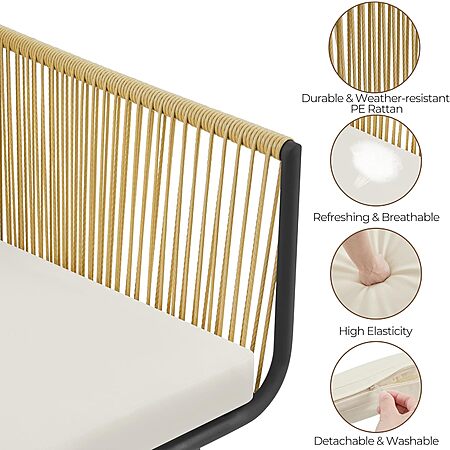 - Comfortable Seating: Cushions and pillows in this bistro set filled with soft foam provide optimal comfort. The removable, washable covers make cleaning a breeze, while polyester ensures long-lasting durability