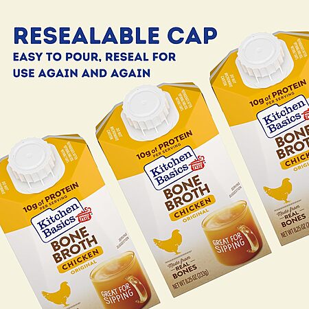 Amazon [amazon.com] has 12-Pack 8.25-Oz Kitchen Basics Original Chicken Bone Broth on sale for $19.16 - 20% off when you 'clip' the coupon on product page [amazon.com] - 5% off when you checkout via Subscribe & Save = $14.37. Shipping is free w/ Prime or on orders $35+.