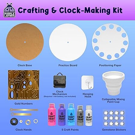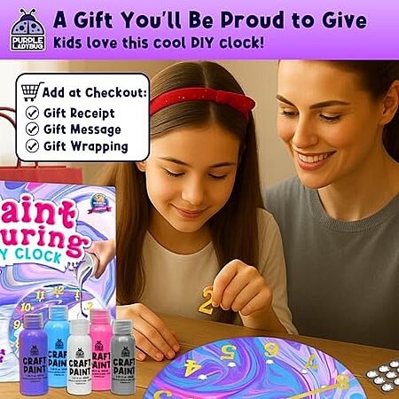 $11.99 | Purple Ladybug Kids Paint Pouring DIY Clock Kit at Amazon