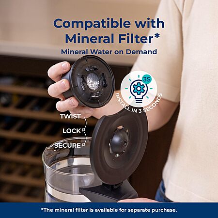 - NO INSTALLATION, PORTABLE DESIGN: This plug-and-play countertop system requires no plumbing or installation. Its high-quality borosilicate glass carafe prevents secondary pollution, making it a superior choice for clean and safe hydration.