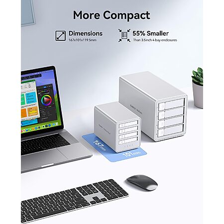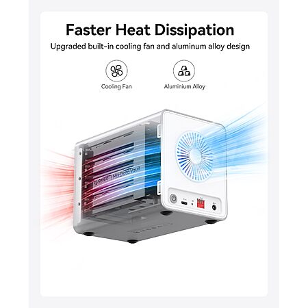 - 【Lightweight & Portable】Compared to traditional 3.5-inch HDD enclosures, the 2.5-inch all-flash model reduces volume by over 50%. Its all-solid-state design lacks mechanical components, offering excellent shock resistance. No extra protective measures are needed when carrying it outdoors—it fits effortlessly into backpacks or camera bags