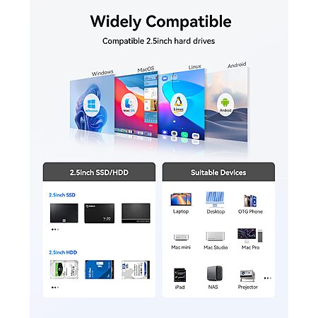 - 【Next-Gen All-Flash Storage Enclosure】ORICOs first 2.5-inch (7–9.5 mm) all-flash storage enclosure is equipped with a USB 3.2 Gen 2 interface, delivering data transfer speeds of up to 10 Gbps when connected to a PSSD and achieving speeds of 5 Gbps when linked via a SATA interface. This high-performance solution enables rapid read/write operations for video content and efficient handling of large project files, significantly enhancing productivity in video editing workflows.