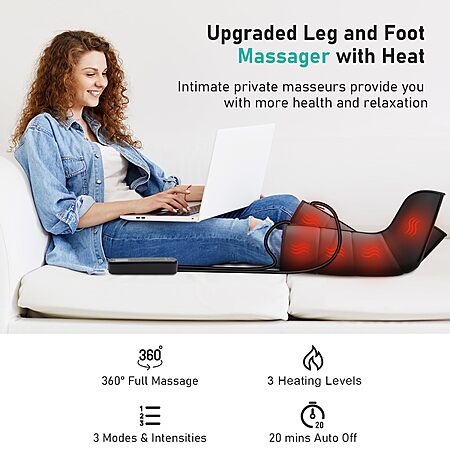 Prime: QUINEAR Heating Leg Compression Massager with 3 Modes, Foot and Calf Massager with 3 Intensities 3 Heats $65