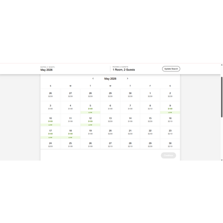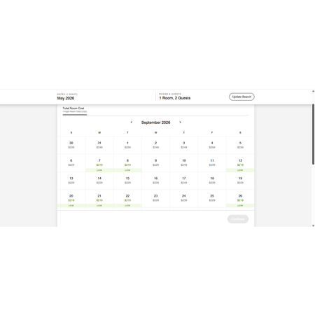 Click on the link above, enter your dates, room/guests, special rates promo code LPR, then view rates. If you are flexible in your dates, select "flexible rates" and view monthly rate calendar like I have in the screenshots below for May and September. I do not have the terms nor know when this ends so don't wait. Make sure your promotion is labeled "Special Rate Available" then clearly see: