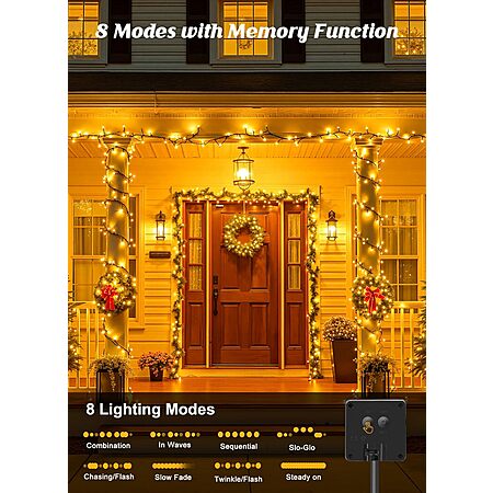 [Prime] 2-Pack 200-LED 80' Brightown Outdoor Solar String Lights w/ 8 Modes and Dusk to Dawn Auto On/Off (Warm White) $8.49 + Free Shipping