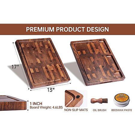 THETCHRY Home via Amazon [amazon.com] has 17" x 13" THETCHRY Double Sided Walnut Wood Cutting Board with Beeswax Paste & Oil Brush on sale for $46.99 - 40% off when you apply promo code 4MTIQ2JZ at checkout = $28.19. Shipping is free.