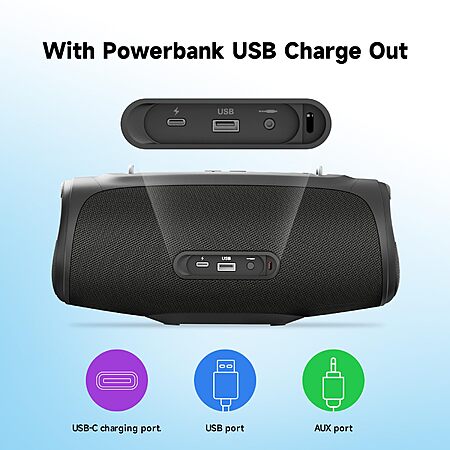 TAZATA Portable Loud Bluetooth Speaker, 60W Large Subwoofer Speakers Wireless Bluetooth 5.3 with Powerbank $26.92
