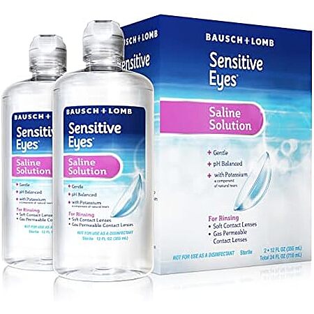 Bausch + Lomb Sensitive Eyes Saline Solution, for Soft & Gas Permeable Contact Lenses, with Potassium, 12 Fl Oz (Pack of 2 $6.64 S&S