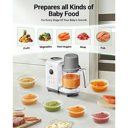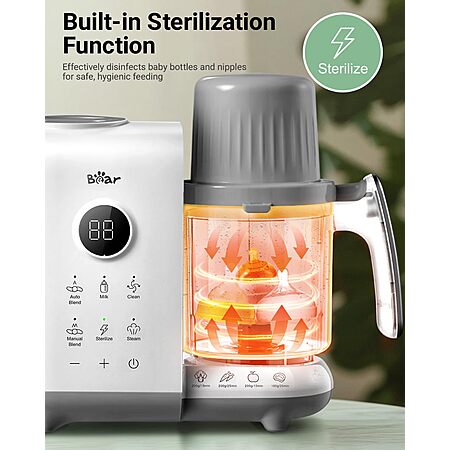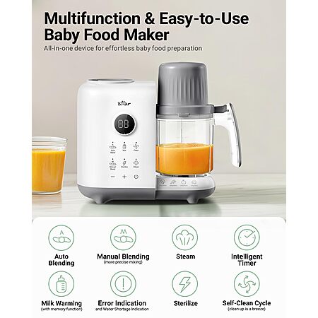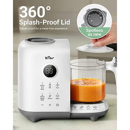 Model: Bear Baby Food Maker with 18.5oz Dual-Layer Steam Baskets, OneStep Baby Food Processor Steamer Puree Blender Grinder Mills, Auto Cooking Grinding&Sterili-zing for Healthy Homemade Baby Food, BPA-Free