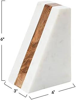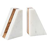 $23.19 | Main + Mesa Marble Geometric Bookends with Wood Inlay, White at Amazon