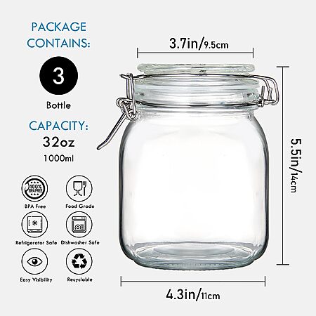 3-Pack 32-Oz YEBODA Food Storage Canister Glass Jars w/ Clamp Airtight Lids $11.96 + Free Shipping w/ Prime or on $35+