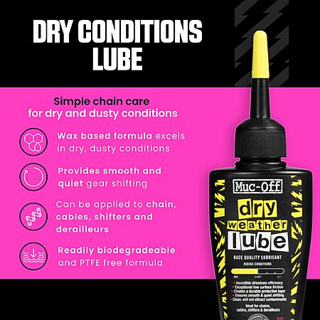 Muc-Off Dry Chain Lube, 50 Milliliters - Biodegradable Bike Chain Lubricant, Suitable for All Types of Bike - Formulated for Dry Weather Conditions $6