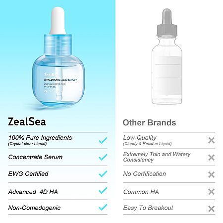 ZealSea Hyaluronic Acid Serum for Face, Hydrating Microneedling Serum Pure Hyaluronic Acid Anti-Aging 1 Oz $14.43