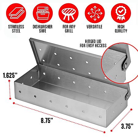 Model: Kaluns Universal Stainless Steel Smoker Box, Gas or Charcoal Grill Smoke Box, Works with Wood Chips, add Delicious Smoked Flavor, Hinged Lid,Warp Free Grill Accessories