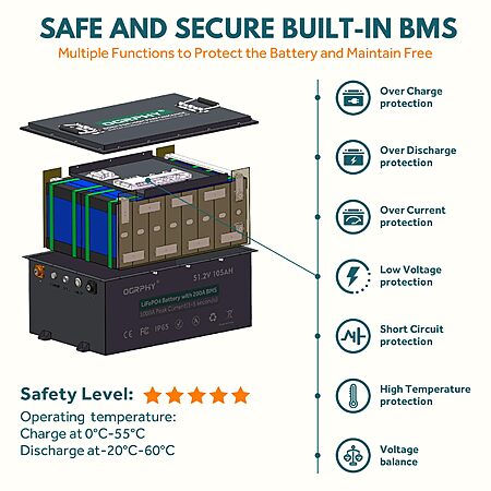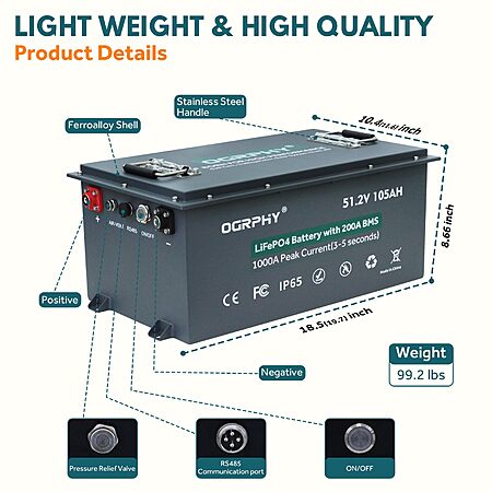 OGRPHY 48V Lithium Golf Cart Battery, 200A BMS(1000A Peak Current), with Touch Monitor & Mobile APP 48V Lithium Battery with 18A Charger, Perfect for Golf Carts $854.98