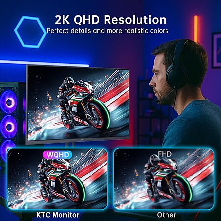 Model: KTC 27 Inch Gaming Monitor - 2K QHD 2560 x 1440 Monitor, Up to 210Hz & 1ms, Bulit-in Speakers, Adaptive Sync, HDR400, 131% sRGB, IPS Monitors Gamer with HDMI 2.0 x 2 & DP1.4 x 2, H27T22C-3