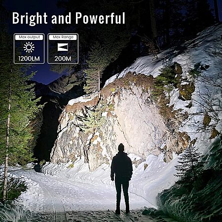1200 Lumens: Dual-LED setup for a wide field of view.