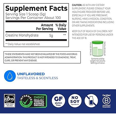 Model: Orgain Creatine Monohydrate Micronized Powder, Unflavored, Supports Muscle Growth, Post Workout Recovery and Brain Health, No Artifical Additives, Non-GMO, 100 Servings, 17.64 Oz