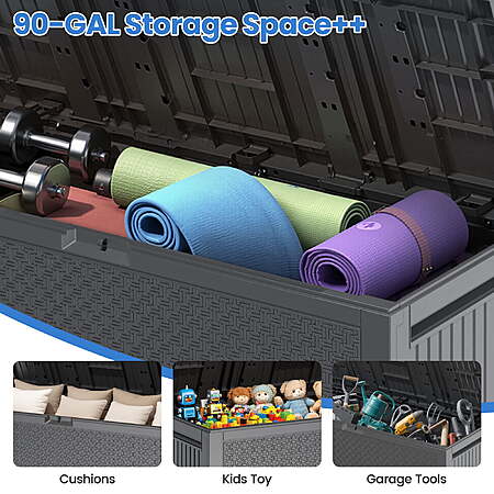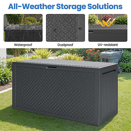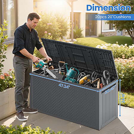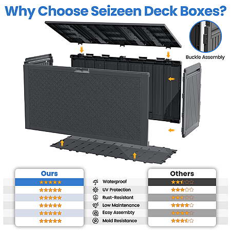 | Product Description: | Seizeen - seize outdoor & beyond indoor 90gal large capacity rattan deck box provides you with a storage solution for outdoor furniture cushions, tools, and toys. This Outdoor Storage Box is densely wrapped with durable Polypropylene Resin to keep items such as patio accessories and cushions dry and dust-free. The airtight top lid gives this outdoor storage box all-weather benefits including waterproof, sun protection, anti-aging and more. It's easy to assemble and features two side handles for easy mobility. Moreover, with Maze Pattern, it can fit with most style of decorations. Combining practical with beautiful, it will meet your needs! 🌤️➤Feature: 1. Indoor and outdoor use - used as garden bench and entryway storage bench. 2. Bottom heightening design - The bottom is designed with multiple raised feet to isolate the storage box from the ground to ensure dryness and ventilation. 3. Unique maze pattern - it is inspired by the autumn harvest maze game, and has a decorative effect that is very interesting to the story. 4. Easy-to-move storage box - There are two deep grooves on the sides for use as handles, and the tight structure will not deform when moving. 5. Multipurpose - seizeen deck box has a reinforced frame and can be used as a storage bench, perfect for indoor and outdoor use. 🌤️➤Specifications: 1. Material: Polypropylene Resin 2. Color:Gray 3. Overall Size: 47.24'' x 20.4'' x 24.41''(L x W x H) 4. Top Max Load: 485LBS 5. Weight:24.47lbs 🌤️➤Package Includes: 1 x Deck Box 1 x Hardware Assembly Accessories 1 x Instruction ⭐[Spacious 90-Gallon Capacity]: This outdoor storage box offers a generous 90-gallon capacity with dimensions of 47.24"L x 20.47"W x 24.41"H, making it ideal for storing patio accessories, garden tools, and more. Its compact size is perfect for patios or garages. ⭐[Durable and Long-Lasting]: Made from waterproof poly resin that resists fading and rusting, this storage box ensures longevity and maintains a fresh appearance for years. ⭐[Quick and Easy Assembly]: Set up your new outdoor toy box in less than 20 minutes with a friend. The user manual includes clear steps and helpful pictures for a hassle-free installation. ⭐[Versatile Indoor/Outdoor Use]: Perfect for both indoor and outdoor storage, this box can hold patio furniture cushions, pool accessories, and more. The lockable lid ensures your items are safe and secure. ⭐[Doubles as Extra Seating or Table]: The flat top design allows this storage box to serve as a bench or table, supporting up to 485 pounds and comfortably seating two adults. |