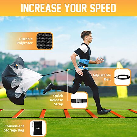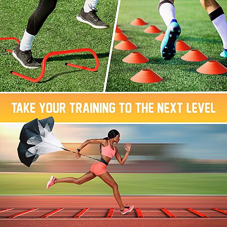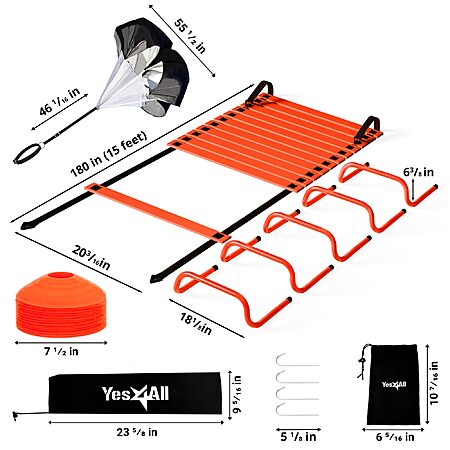 $24.71: Yes4All Agility Ladder Training Set | Adjustable Ladder, 12 Soccer Cones, 5 Hurdles, Jump Rope & Running Parachute | Speed & Agility Training for All Ages at Amazon