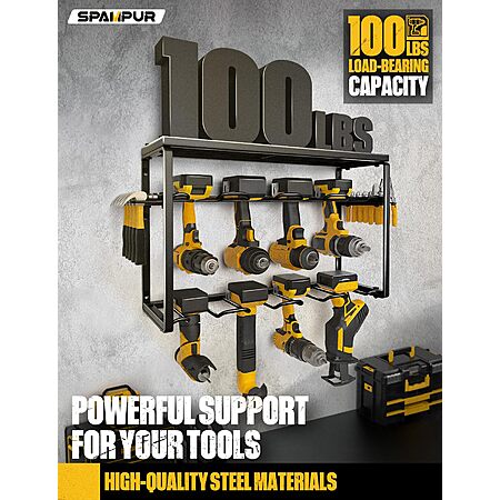 3-Tier Spampur Wall-Mount Power Tool Organizer (Yellow, 8 Drill Holders) $19.99 + Free Shipping w/ Prime or on $35+