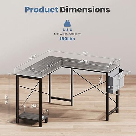 $49.98 | DUMOS L Shaped Desk Computer Gaming Corner Table 50 Inch at Amazon