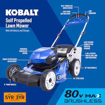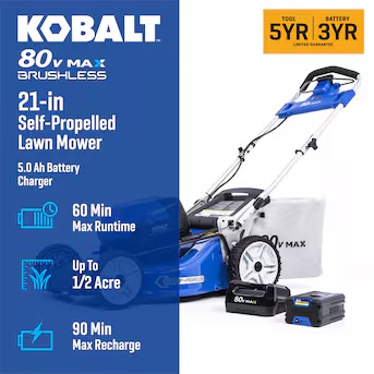 Kobalt 80-volt, 21-in Self Propelled Battery Walk Mower with (1) 5 Ah Battery & Charger Included $409