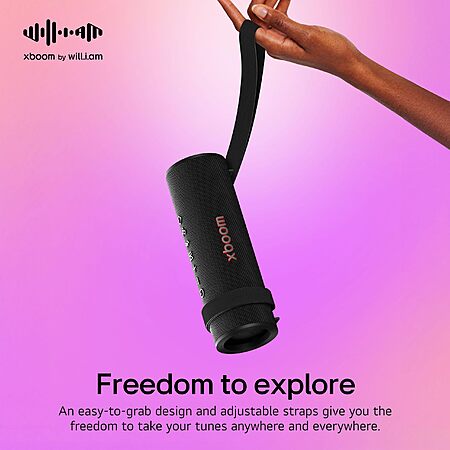 Amazon.com has LG xboom Grab Core by will.i.am, Portable Outdoor Bluetooth Speaker for Sports and Athletes, up to 19 Hours, IP67 Dust and Water Resistant, Adjustable Carrying Straps. Perfect for Biking and Hiking on sale for $50.4.