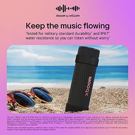- xboom by will.i.am: Crafted by tech pioneer will.i.am, combining signature sound and innovative design for a next-level audio experience.