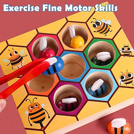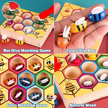 YUNCHY Toddler Fine Motor Skill Toy, Bee to Hive Matching Game, Montessori Wooden Color Sorting Matching Toy, Preschool Educational Learning Toys Gift for Toddler 3 Years Old $9.98