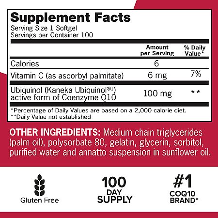Qunol Mega Ubiquinol 100mg CoQ10, Superior Absorption, 100 Count Softgels $27.89