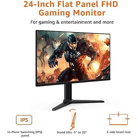 Model: Amazon Basics 24 Inch (23.8 inch viewable) Gaming Monitor, FHD 1080P, 165Hz, VESA Compatible, Adaptive sync, 1ms Response, Black