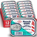 12-Pack 3.75-Ounce Beach Cliff Sardines in Soybean Oil on sale for $13.18 -