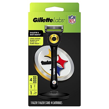 $15.19: Gillette Labs NFL Steelers Edition Shaving Razor – 1 Handle, 4 Blade Refills, Magnetic Stand, Exfoliating Bar for Men at Amazon