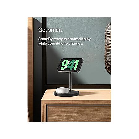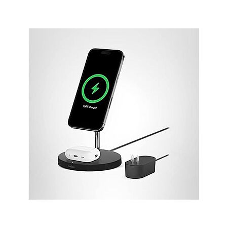- 2-IN-1 CHARGER: Power your Apple ecosystem with this Belkin 2-in-1 Wireless iPhone Charger Stand. It is the perfect charging station for multiple Apple devices, including iPhone 16, 15, 14, 13, 12 - Pro, Pro Max & mini and AirPods