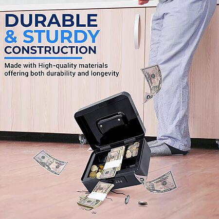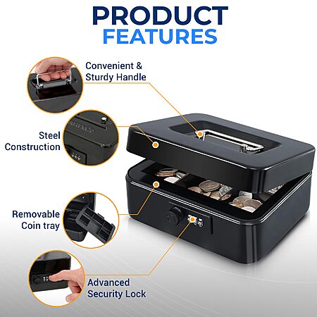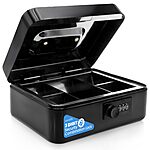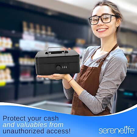 $10.99: Serenelife 8" Metal Cash Box with Lock – 5 Lockable Drawers, Money Tray, Compartment Storage for Valuables, 8” x 6.2” x 3.5”, Black at Amazon