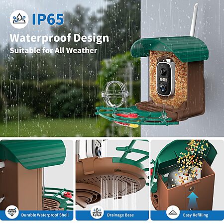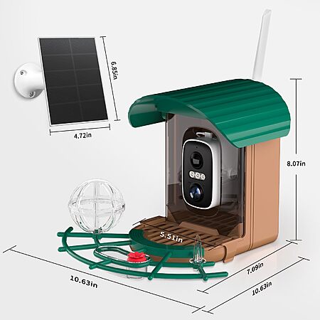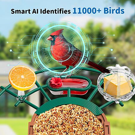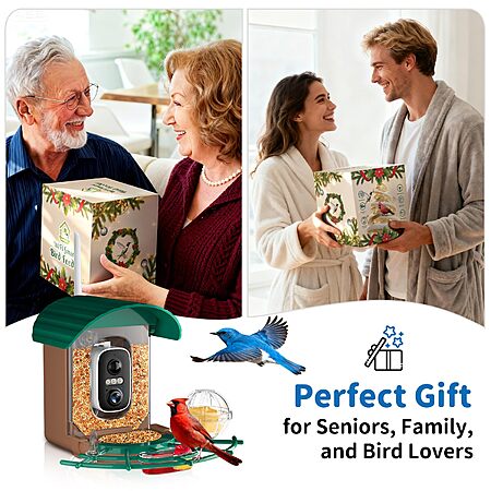 NIORSUN via Amazon.com has NIORSUN Smart Bird Feeder with Camera Solar Powered, 2K HD Video AI Recognition Feeder with Instant Notifications, Eagle Alarm, Infrared Night Vision, Ideal Gift for Family and Bird Lovers, Green on sale for $24.99.