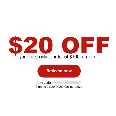 Screenshots of current sale price, 10% coupon offer in app, $20 off $100 emailed coupon, and final order price included.