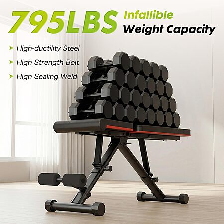 Amazon.com has OLIXIS Adjustable Weight Bench for Full Body Strength Training, Foldable Workout Bench with Incline Flat Positions, 795 lbs Capacity Dumbbell Bench for Home Gym, Sit Up, Press, and Ab Exercises for $50. Shipping is free.
