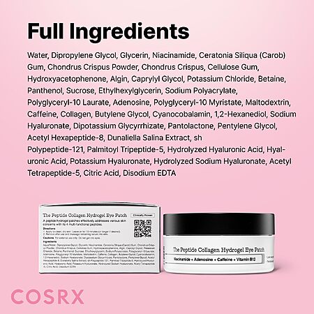 COSRX Pink Peptides Collagen Hydrogel Eye Patch for Puffy Eyes and Dark Circles, Under Eye Mask, 60 Under Eye Patches, Korean Skin Care $18.4