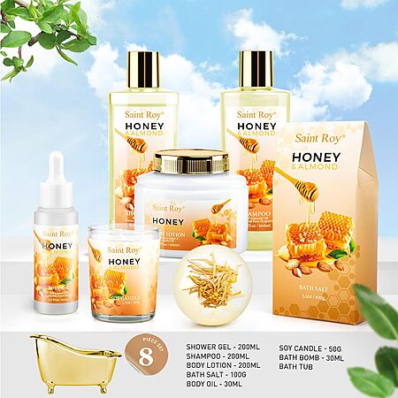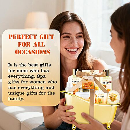 Mothers Day Birthday Spa Gifts for Women, 8pcs Honey Almond Bath Gift Set for Women, Spa Gift Basket for Women & Men $14.99