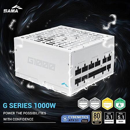 Model: SAMA G1000W ATX 3.1 Power Supply, 80 PLUS Gold & Cybenetics Platinum Certified, PCIE 5.1 Ready, Full Modular, 1000W Power Supply, Japanese...