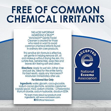 Vanicream Gentle Facial Cleanser with Pump Dispenser - 8 fl oz - Formulated Without Common Irritants for Those with Sensitive Skin $8.74