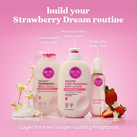 Amazon [amazon.com] has 16-Ounce eos Shea Better Body Lotion (Strawberry Dream) on sale for $9.97 x 2 - $8.96 off when you 'clip' the coupon on product page [amazon.com] - 5% off when you checkout via Subscribe & Save = $9.98. Shipping is free w/ Prime or on orders $35+.
